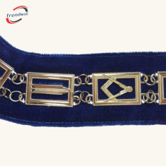Discover the distinguished Blue Lodge Chain Collar - Gold Plated on Blue Velvet by TrendWall, crafted exclusively for Masonic Blue Lodge members. This chain collar, meticulously made with high-quality gold plating, features a deep blue velvet base, lending an air of refinement and respect to Masonic traditions. The handcrafted detailing enhances the visual appeal, ensuring a timeless addition to any Freemason’s regalia.